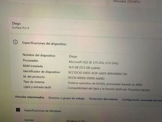 Microsof Surface Pro X, procesador ARM, tiene teclado ingles (le falta la ñ) Modelo 2 en 1, tablet ordenador