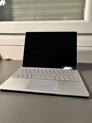 Portátil Microsoft Go en color plata. Pequeñito y bonito, ideal para llevar a todas partes. - Pantalla de 12.4 pulgadas. - Pantalla Táctil. - Procesador Intel i5-1135G7. - 8GB de RAM. - 128GB de almacenamiento. - Windows 11 - La distribución del teclado es francesa(El Ordenador Es Francés) Incluye caja, funda teclado y cargador.
