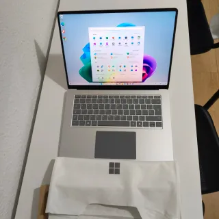 Ordenador portátil Microsoft Surface Laptop 5 en color negro. - Pantalla de 13,5" resolución 2K y táctil. - Intel i5-1245U de 12 generacion - 16 GB RAM - 256 GB disco duro. - Bateria, pantalla y teclado en perfecto estado, ha sido utilizado muy poco. Tiene un desperfecto en la parte superior externa por un roce, no afecta en absoluto a la funcionalidad y no se ve al utilizarlo. Se entrega con cargador original.