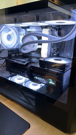Potente torre de PC para gaming en 2k 4k y tareas exigentes, lista para jugar. A toda prueba. Caja y factura de todo Recien salido al mercado el 1 Febrero Ryzen 7 9850X3D - Tarjeta gráfica NVIDIA GeForce RTX 4080 Super Aorus - Refrigeración líquida Corsair 360 -Placa Asus X870 Max Wifi -64GB Ram T-Force 6000mhz CL28 -Fuente 850w corsair RM850e 80 plus -Caja Lian Li 207 con pantalla Lcd - 3 ventiladores de 120mm extra Lian Li + 2 Ventiladores 140mm Lian li