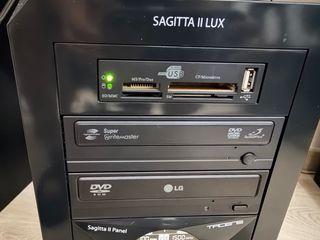 Caja ordenador tacens sagitta lux con placa base procesador intel core 2 quad cpu q9650 3.0ghz, 2 tarjetas memoria ram 4gb ddr3 cada una y fuente de alimentacion La caja lleva dvd y grabadora y pantalla con sensores de temperatura y lector de tarjetas