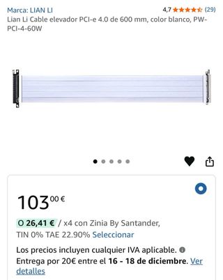 Cable elevador Lian Li para PCIE 4.0 de 600 mm en color blanco. - Longitud: 600 mm - Color: Blanco - Conexión: PCI-e 4.0 Se suele usar en una torre Lian Li O11d Dynamic, para poner la GPU “de pie” en posición UPRIGHT, dando un aspecto visual al interior de la torre minimalista y espectacular. *Solo vendo el cable*