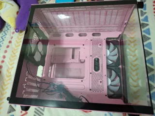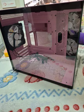 Tiene roto el cristal, la placa base no incluida. Viene con cuatro ventiladores.
