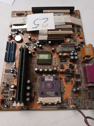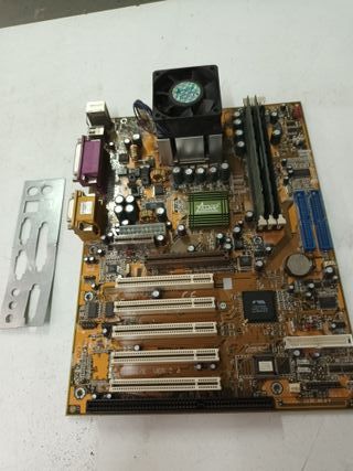 PLACA BASE, TIENE UN PROCESADOR CELERON 1.00GHZ, funcionando tal como se ve en las fotos, ( la placa ha sido desmontada de un pc y conectada a corriente y comprobada que enciende y da video, no esta reparada ni se le ha revisado nada mas, solamente lo que se se ve en las fotos) VENDO LA PLACA, EL PROCESADOR, EL DISIPADOR, LA MEMORIA RAM QUE TIENE PUESTA, ref. n-5 producto vintage sin garantia ni devolucion
