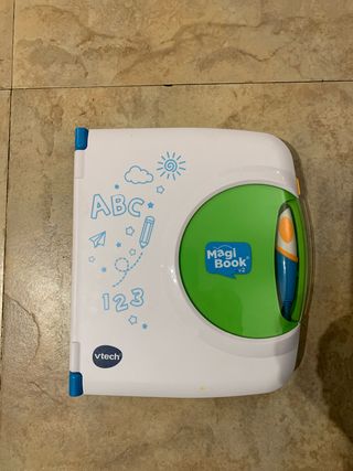 Ordenador educativo VTech Magi Book v2. - Dos libros hora de jugar y escuela de superhéroes. - Diseño blanco y verde. - Incluye lápiz azul y naranja.
