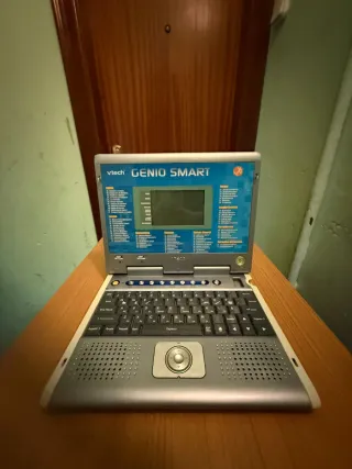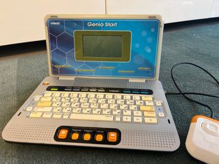 Ordenador educativo VTech Genio Student para niños. - Pantalla con juegos y actividades. - Teclado QWERTY con teclas de colores. - Botones de navegación y altavoces. - Divertidas opciones como Silabas y letras, Idiomas, Mundo matemático y Estudio creativo. -Tiene algunas señales de uso pero funciona muy bien