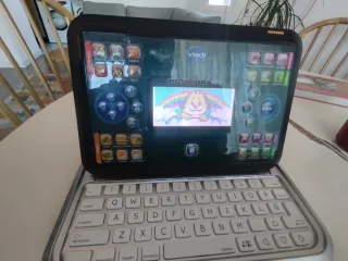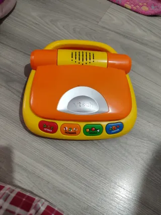 Ordenador educativo para niños de la marca VTech. Diseñado para el aprendizaje interactivo. - Teclado con letras y números. - Pantalla con gráficos. - Botones de colores.