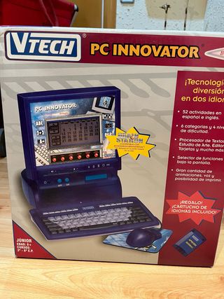 Ordenador educativo VTech PC Innovator en color azul y gris. Diseñado para el aprendizaje de niños. - 52 actividades en español e inglés. - 6 categorías y 4 niveles de dificultad. - Procesador de Textos, Estudio de Arte, Editor de Tarjetas y más. - Selector de funciones bajo la pantalla. - Incluye gran cantidad de animaciones, voz y posibilidad de imprimir. - Incluye cartucho de idiomas.