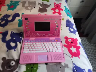 Ordenador infantil de la marca VTech en color rosa. Ideal para el aprendizaje de los más pequeños, en muy buen estado, funciona perfectamente, hay varias fotos donde se aprecia que está la pantalla encendida. - Pantalla con juegos interactivos. - Teclado con letras y números. - Botones de navegación y altavoces.