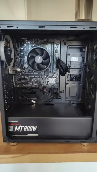 Torre de ordenador - Fuente de alimentación de 500W. - Procesador Ryzen 5 4500. - No incluye tarjeta gráfica. - Placa Base Asrock B450 Pro4 R2.0. - Ventana lateral. - Ventiladores RGB. - 8GB 3200mhz Memoria RAM - 512 GB SSD - No incluye leds Todos los componentes completamente nuevos sin uso, la placa base incluye Windows 10 Pro, entrego su respectiva caja.