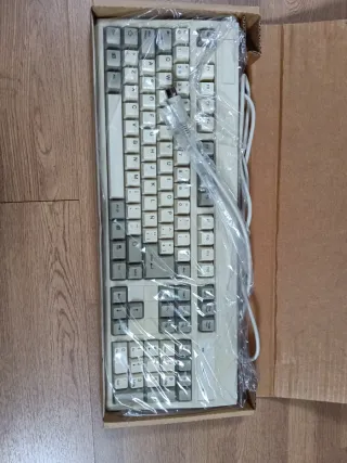 Teclado para ordenador con diseño inspirado en Windows 95. - Marca: ERVA - Color: Beige y azul - Diseño retro