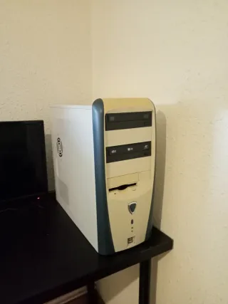 Torre de ordenador de sobremesa con un diseño clásico. - Procesador: AMD Phenom x4 9950 a 2.60 GHz 4 núcleos 4 hilos - Placa base: ga-m61sme-s2 socket AM2+ - Memoria RAM: 4 gigas de RAM DDR2 en dual Channel - Tarjeta gráfica: Nvidia GeForce 9500 GT 1 GB GDDR2 - Disco duro: SSD 60 gigas y HDD 250 gigas - Fuente de alimentación: 500W genérica - Cableado: cable de corriente y cable VGA para monitor - Sistema operativo: Windows 10 64 bits juego probado: Line of sight (shooter) El pc va correctamente, se puede ver y probar, la caja es viejita pero hace su función perfectamente, los USBs delanteros funcionan perfectos Hago envíos