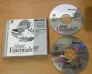 Software de Microsoft Home Essentials 97 para Windows. Incluye varios programas útiles para el hogar. - Atlas Mundial Microsoft Encarta - Microsoft Fútbol Perfecto para tu colección retro, software o Microsoft. También para tu PC antiguo.
