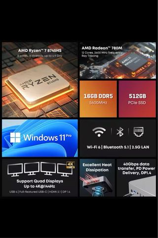 Pc Chuwi Aubox Ryzen 7 8945 16 gb RAM DDR5 1/2 tb