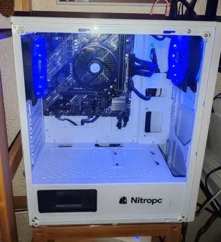 Ordenador de sobremesa Nitro PC con un diseño moderno y llamativo. De regalo Ratón, teclado, cables, antena WiFi y bluetooh. Windows 11 oficial reestablecido con licencia Discos duros formateados. Drivers instalados - Carcasa de color blanco. - Iluminación LED azul. - Ventiladores con luz azul.