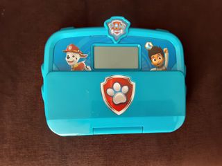 Ordenador con teclado plegable con 6 ACTIVIDADES: para descubrir letras, sus sonidos, formas, cálculo, memorización, vocabulario y el clima. Funciones: alarma, reloj y cuco. Con las voces reales de la Patrulla canina. En buen estado, se entrega sin pilas.