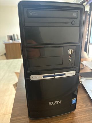 Ordenador de sobremesa EVAN en buen estado, ideal para tareas de ofimática. - Diseño elegante en color negro. - Unidad óptica DVD. - Puertos USB frontales para fácil acceso. - Botones de encendido y reinicio accesibles. - 8gb memoria RAM - CPU - Placa MSI H81-M Se entrega completamente limpio para instalar windows