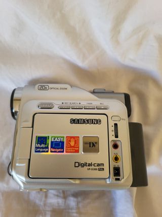 Camcorder digital Samsung Mini DV VP-D300 PAL.Bateria nueva a estrenar cargador cables conesion para pasar y a pc bolsa de transporte y varias cintas funciona perfectamente. - Zoom óptico 20x. - Estabilizador de imagen digital. - Navegador Easy Navigator. - Múltiples idiomas.