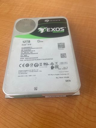 Disco duro de alta capacidad para entornos empresariales. - Modelo: Exos X16 - Capacidad: 12TB - Interfaz: SATA - Fabricado en Tailandia - Fecha de fabricación: 13JAN2021 Están formateados bajo nivel, y testeados, 100% clusters correctos. Tengo 2 unidades. Las dos por 400€.