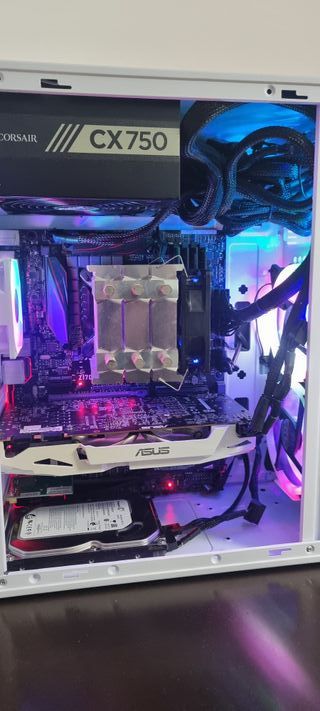 Potente PC de alta gama, ideal para gaming y tareas exigentes. Diseño moderno con iluminación RGB y ventiladores lianli. - Tarjeta gráfica Gigabyte RTX 3060ti - Processador Ryzen 5 5500 - RAM 32gb (4x8gb) ddr4 3200mhz Forgeon - Placa base b550 Pro Vdh Wifi - Almacenamiento 1tb ssd 1.7 samsung - Refrigeracion Liquida Thermalright V3 360 - Gabinete Montech xr white - Múltiples ventiladores con iluminación de lianli infinity mirror. Componentes valorados en 1300€