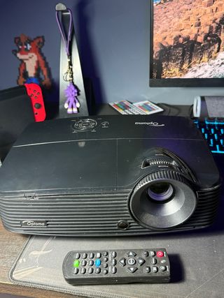 Vendo proyector Optoma en muy buen estado. Ideal para cine en casa, series, videojuegos o presentaciones. Funciona perfectamente, con buena calidad de imagen y ventilación ok. Incluye mando a distancia. ⭐ Características: • Tecnología DLP • Enfoque y zoom ajustables • Lente de calidad con buena nitidez • Compatible con consolas, PC, TV Box, etc. • Funcionamiento silencioso • Diseño compacto y resistente 📦 Incluye: • Proyector Optoma • Mando a distancia 📝 Estado: • Usado pero en buen estado • Sin golpes ni daños importantes • Limpio y listo para usar • La lámpara funciona correctamente