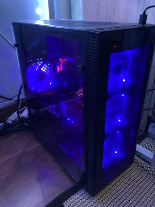 Ordenador de sobremesa con iluminación LED azul. - Ventilador con luz LED azul. - Tarjeta gráfica con iluminación LED. - Diseño de caja con rejilla frontal. - Procesador i5-12400 - Gráfica 1650 - Ram 128 GB - Almacenamiento 2TB - Windows 11 pro Instalado