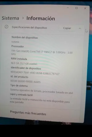 Ordenador Dell de alta gama con procesador Intel Core i7. - Procesador: 11th Gen Intel(R) Core(TM) i7-1185G7 @ 3.00GHz - RAM: 16,0 GB (15,7 GB usable) - Identificador de dispositivo: 9DE9AD63-76AF-419D-B35B-E28B2C767127 - Id. del producto: 00330-80000-00000-AA415 - Sistema operativo: 64 bits, procesador basado en x64