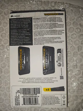 Kit de memoria RAM Corsair Vengeance LPX de 32GB (2 módulos de 16GB cada uno) con velocidad de 3200MHz. - Tipo de memoria: DDR4 - Capacidad total: 32GB - Configuración: 2x16GB - Velocidad: 3200MHz - Perfil bajo para alto rendimiento y overclocking.