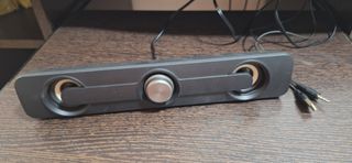 Altavoz compacto para ordenador. - Diseño moderno en negro y plateado. - Incluye cables de conexión.