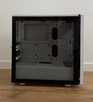 Caja para ordenador de la marca Corsair con panel lateral de cristal templado y acabado en color blanco. Su diseño moderno y elegante la hace destacar. - Panel lateral de cristal templado. - Color blanco.