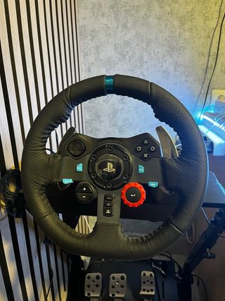 Volante de carreras y pedales para PS4/PS5/PC. Comprado NUEVO este año, apenas usado, se vende por falta de tiempo. - Volante con acabado en cuero. - Pedales de acelerador, freno y embrague. - Force Feedback para simular la conducción real.