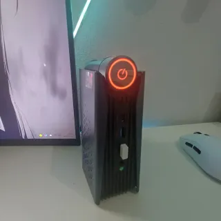 Mini PC Acemagic en color negro y gris. Compacto y eficiente para tus tareas diarias. - Diseño moderno y discreto. -3 modos de rendimiento - 6 puertos usb y uno tipo C -1tb de almacenamiento -32gb de ram -juegos como fortnite + 250 fps