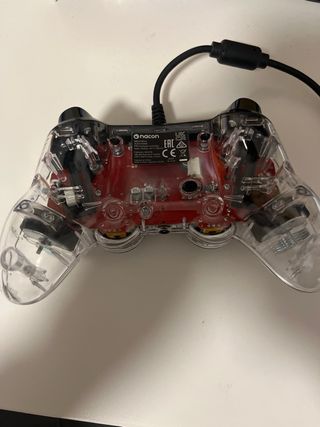 Mando de control transparente para PlayStation 4, PC y PlayStation 5. Este mando emite luces. - Diseño transparente que permite ver el interior. - Compatible con PS4, PC y PS5 - Incluye cable de conexión. - NO TENGO LA CAJA - ES MARCA NACON x PlayStation
