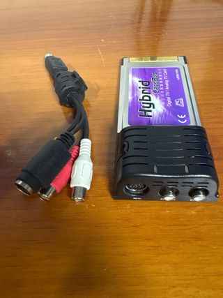 Tarjeta sintonizadora de TV híbrida para PC. - Compatible con TDT y TV analógica. - Conexión CardBus. - Incluye cable con conectores RCA (amarillo, blanco, rojo) y S-Video. - No dispongo de más de lo que se ve en las fotografías. - No testada por que no tengo portátil con esta entrada, por eso la pongo como averiada, pero no sé si lo está.