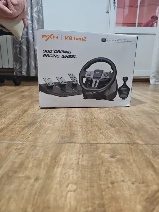 Volante de gaming PXN V9 Gen2 con 900 grados de rotación. - Incluye pedales. - Compatible con PC, PS3, PS4, Xbox One y Xbox Series X/S.