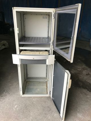 Armario metálico para ordenador de 160 cm de altura. La altura de la parte baja es de 82cm - Ideal para organizar equipos informáticos. - Dos compartimentos principales. - Puerta con cristal. - Incluye bandeja extraíble.
