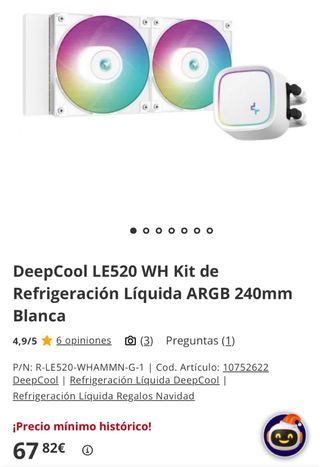 Está nueva, montada en el pc 1 semana solo. Refrigeración líquida para PC Deepcool Gammaxx LE520 WH. - Modelo: LE520 WH - Tamaño del radiador: 240mm - Tecnología Anti-Leak Inside