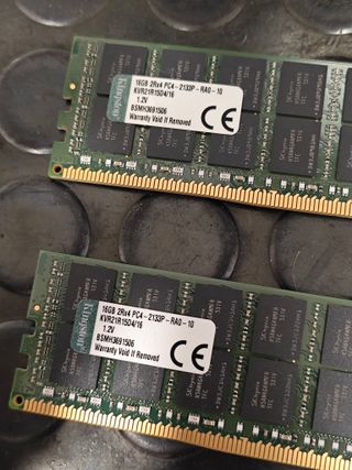 Módulos de memoria RAM Samsung DDR3L ECC de 16GB. TOTAL 96GB Se venden los 6 por 100€ o individualmente por 20€. - Capacidad: 16GB por módulo. - Tipo: DDR3L - Velocidad: PC3-10600R (1333MHz) - ECC (Error-Correcting Code)