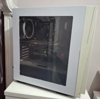 Ordenador de sobremesa con una combinación de colores blanco y negro. - Diseño moderno con ventana lateral. - Componentes internos visibles. - Ideal para gaming o uso profesional. -intel !7 3820 3'6 ghz -ram 16 gb -grafica radeon rx 570 de 4 gb -disco duro de 120 gb -otro de tb de capacidad