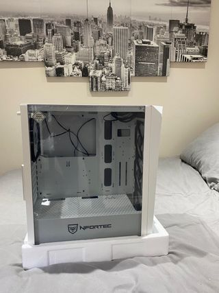 Caja para ordenador de sobremesa Nfortec krater. Diseño moderno con panel lateral de cristal templado. Usada pero en buen estado. - Incluye 4 ventiladores Rgb - Incluye embalaje original de protección.