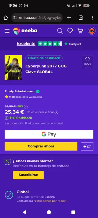 Cyberpunk 2077 PC GOG Clave GLOBAL