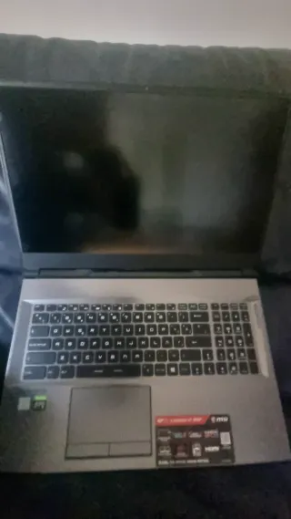 Ordenador portátil para gaming de la marca MSI. Diseño moderno y elegante. - Carcasa negra. - Logo distintivo de la marca en la tapa.leer bien funciona bien muy bien excepto la tarjeta gráfica que ay que cambiar solo eso tiene que no le va esta casi nuevo no quiero invertir en el ya que tengo otro .