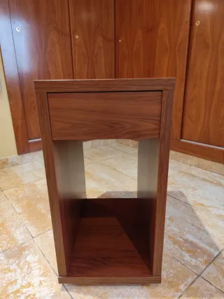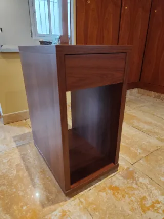 Mueble de madera de IKEA con un diseño funcional. - Espacio abierto para colocar un ordenador o equipo. - Cajón superior para almacenamiento adicional.