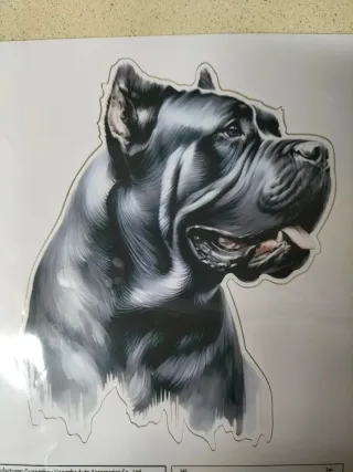 Pegatina decorativa de un perro Canecorso. - Diseño detallado en blanco y negro. - Ideal para personalizar vehículos o superficies. - Unidades: 1pc.