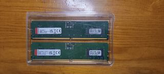 Pack de 2 módulos de 8Gb cada uno dememoria RAM para PC DDR5 5200Mt/s Non-ECC dando un total de 16Gb. Son 2 módulos Kingston KVR52U42BS6-8 cada uno. Incluye su blister original de plástico. Los usé temporalmente en una placa Gigabyte Z790 pero ya no me hacen falta y por eso los vendo. Funcionan perfectamente. Hago venta solo por wallapop envíos porque no puedo quedar en persona por el trabajo.