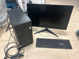 Se vende ordenador de sobremesa completo con monitor y teclado. - Monitor AOC de 24 pulgadas. - Teclado USB. - Torre de ordenador negra. Almacenamiento 447GB Tarjeta gráfica 128 MB RAM 8 GB
