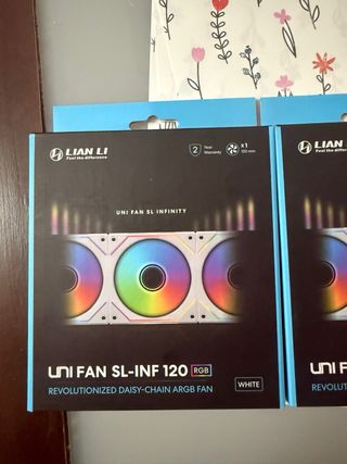 Ventiladores para PC Lian Li UNI FAN SL-INF 120. - Modelo: SL-INF 120. - Color: Blanco. - Iluminación: RGB. - Tipo: Ventilador ARGB daisy-chain. - Tamaño: 120 mm. - Garantía: 2 años.