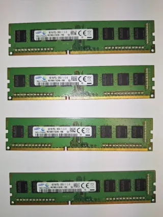 Se venden cuatro módulos de memoria RAM Samsung de 4GB cada uno. - Capacidad total: 16GB (4 x 4GB). - Tipo de memoria: DDR3. - Modelo: M378B5173QH0-YK0. - Velocidad: PC3L-12800 (1600MHz). 50€ los 4, si quieres unidades sueltas a 15€ cada uno