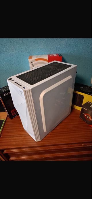Torre de PC gaming con tres años de antigüedad y revisado por servicio técnico profesional. Ideal para jugar a 1080 y 2K. También tengo las cajas de los componentes por si las quieren. -Caja Tempest Spook RGB Torre ATX blanca - Placa base Gigabyte B550M Aorus Elite. -Procesador AMD Ryzen 7 5800X 8 Core, 16 Thread Processor, PCIe 4.0. -Tarjeta Gráfica Sapphire Pure blanca AMD Radeon RX7800XT 16 GB - Memoria RAM Kingston Fury 16GB 2x8 3600MHz y Kingston HyperX 16GB 2x8 3600MHz. - Disco duro NV3 1 TB M.2 PCI Express 4.0 NVMe 3D NAND con Windows 11. -Fuente de Alimentación Corsair RM750e 750W 80 Plus Gold Full Modular ATX (negociable)