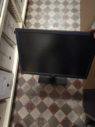 Monitor de ordenador Fujitsu en color negro. Ideal para tu espacio de trabajo o entretenimiento. - Diseño elegante y moderno. - Base estable para colocar sobre cualquier superficie.